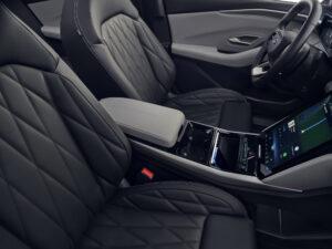 Het interieur is sportief en uitnodigend, met een wrap-around cockpit-effect waarbij het instrumentenpaneel als één designelement optisch samensmelt met de portieren. Traditionele elementen zijn weggelaten, zoals grote ventilatieroosters. Deze zijn nu slank van vorm en zijn geïntegreerd in de tweede laag van het design. Een prominente designfeature is de luidsprekerafdekking in soundbar-stijl. Het perfect afleesbare, zwevende 5-inch digitale instrumentenpaneel informeert de bestuurder over rijgegevens, het laadniveau van de accu en de status van de rijassistentiesystemen. Het overall design creëert een minimalistische, rustig ogende, digitale ruimte.