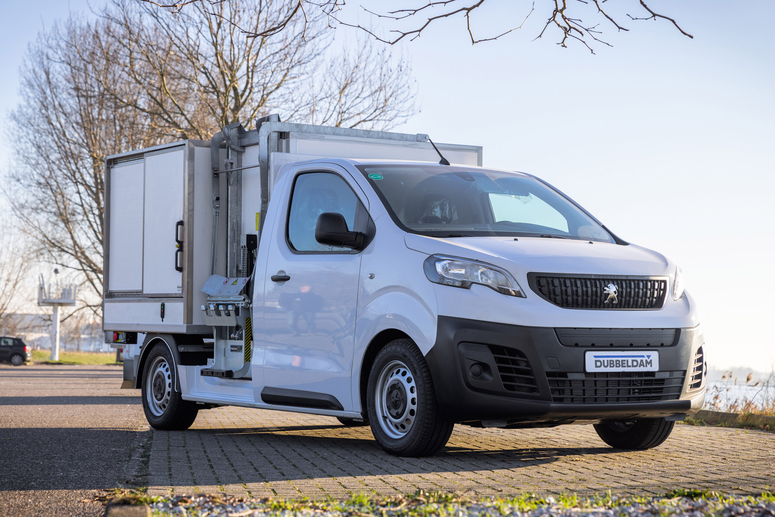 De nieuwe Peugeot E-EXPERT is verkrijgbaar in verschillende carrosserievarianten: Als gesloten bestel met een standaard lengte (L1) van 4,98 meter of als verlengde versie (L2) van 5,33 meter, als dubbele cabine L1, dubbele cabine L2 met vijf of zes zitplaatsen, als platform-cabine en als combi L1 of L2 met negen zitplaatsen. Deze Peugeot E-EXPERT met unieke veegvuilopbouw en zijbelader betreft een platform-cabine.